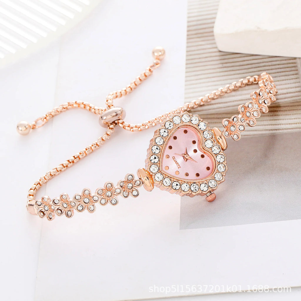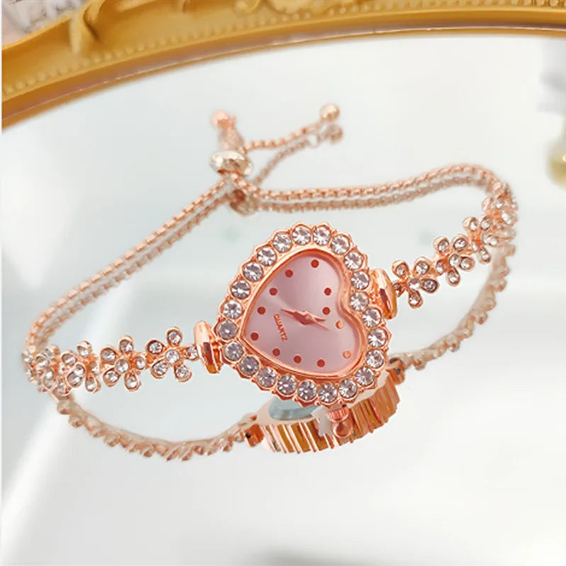 Apresentamos o relógio pulseira feminino MOONBIFFY, uma combinação perfeita de elegância, romantismo e design artístico. Com um delicado formato de coração no mostrador e uma pulseira em corrente floral cravejada com pedras brilhantes, esse acessório se destaca como uma verdadeira joia no pulso. Ideal para mulheres que desejam expressar seu estilo com sutileza e charme.