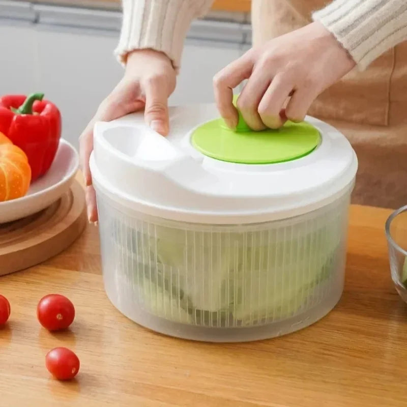 Diga adeus às folhas molhadas e ao desperdício de tempo! Com este secador de salada multifuncional, você lava, centrifuga e drena suas verduras e legumes em segundos, mantendo-os sempre frescos, crocantes e prontos para o consumo.